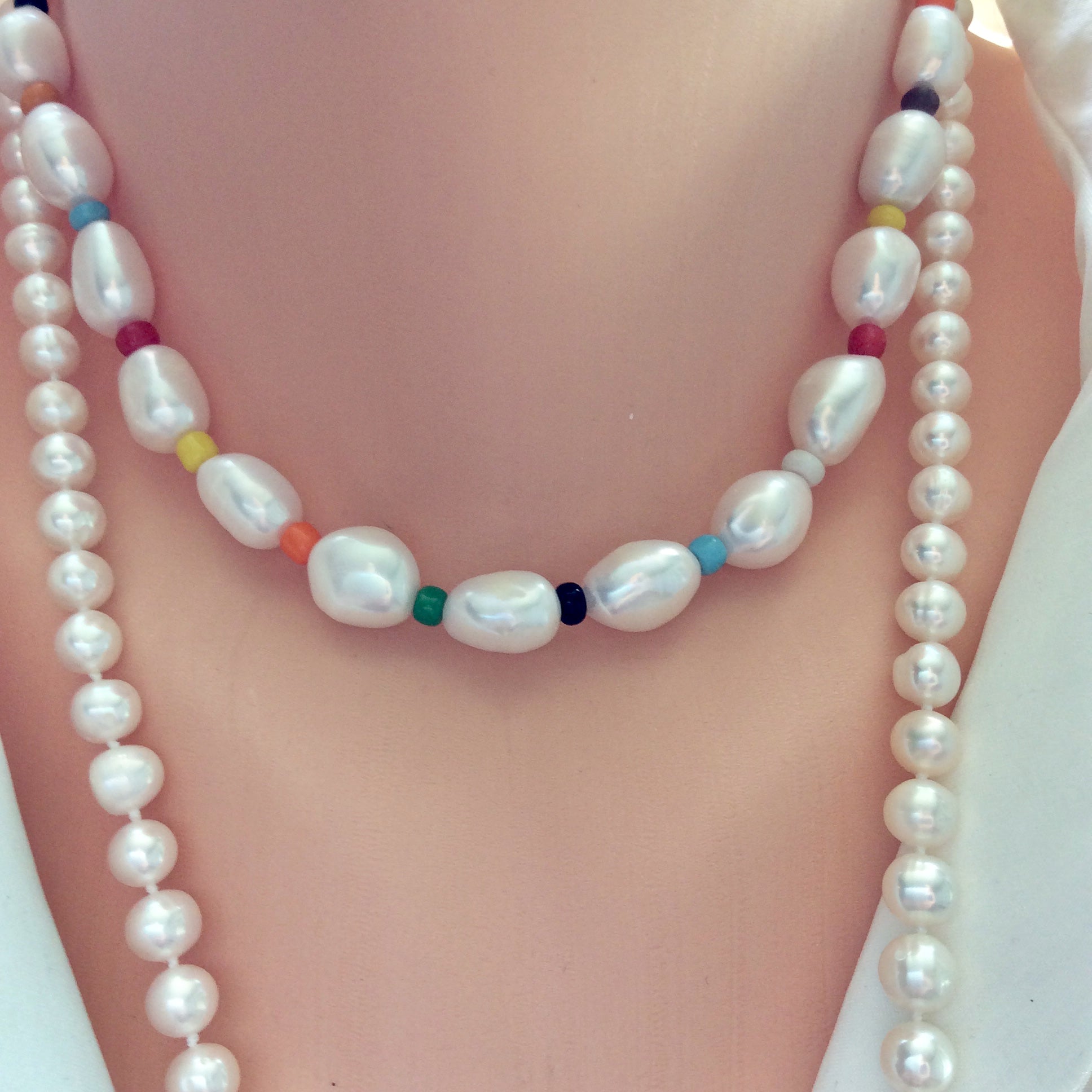 Pearls & Colourful African Glass Necklace